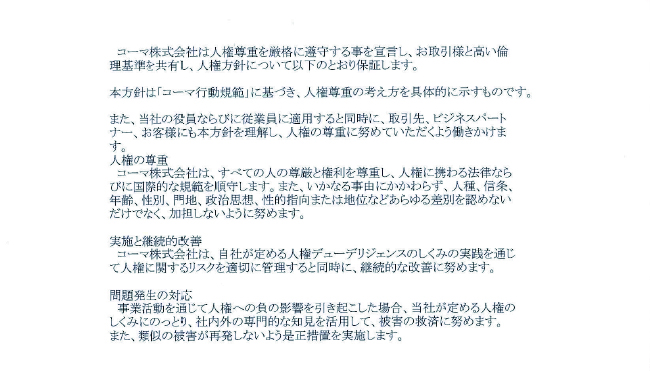 人権方針を策定いたしました。